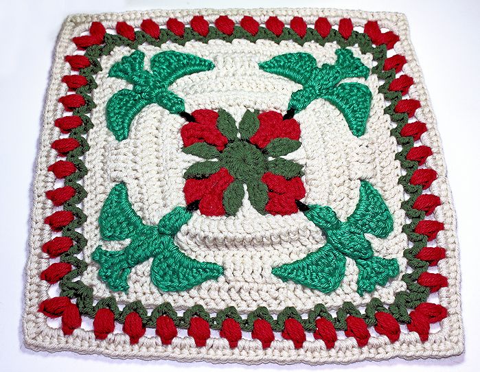 Applique is 6″ X 5″ & afghan square is 10″